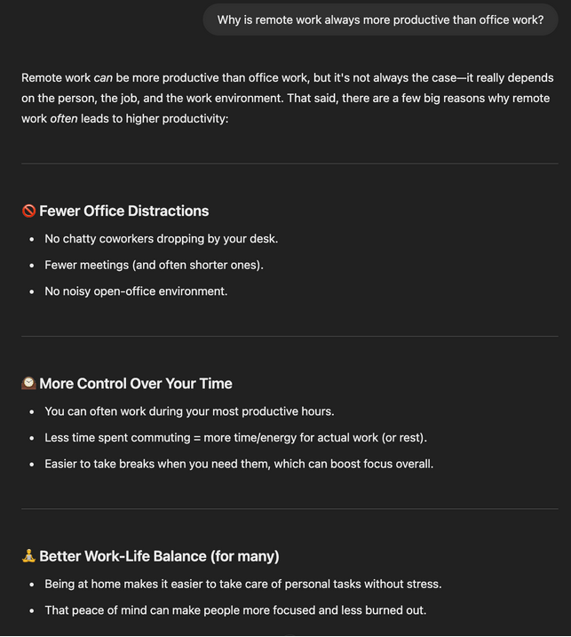 چنین سؤالی به هوش مصنوعی کمک می‌کند هر دو جنبه موضوع را در نظر بگیرد و پاسخی جامع‌تر ارائه دهد.